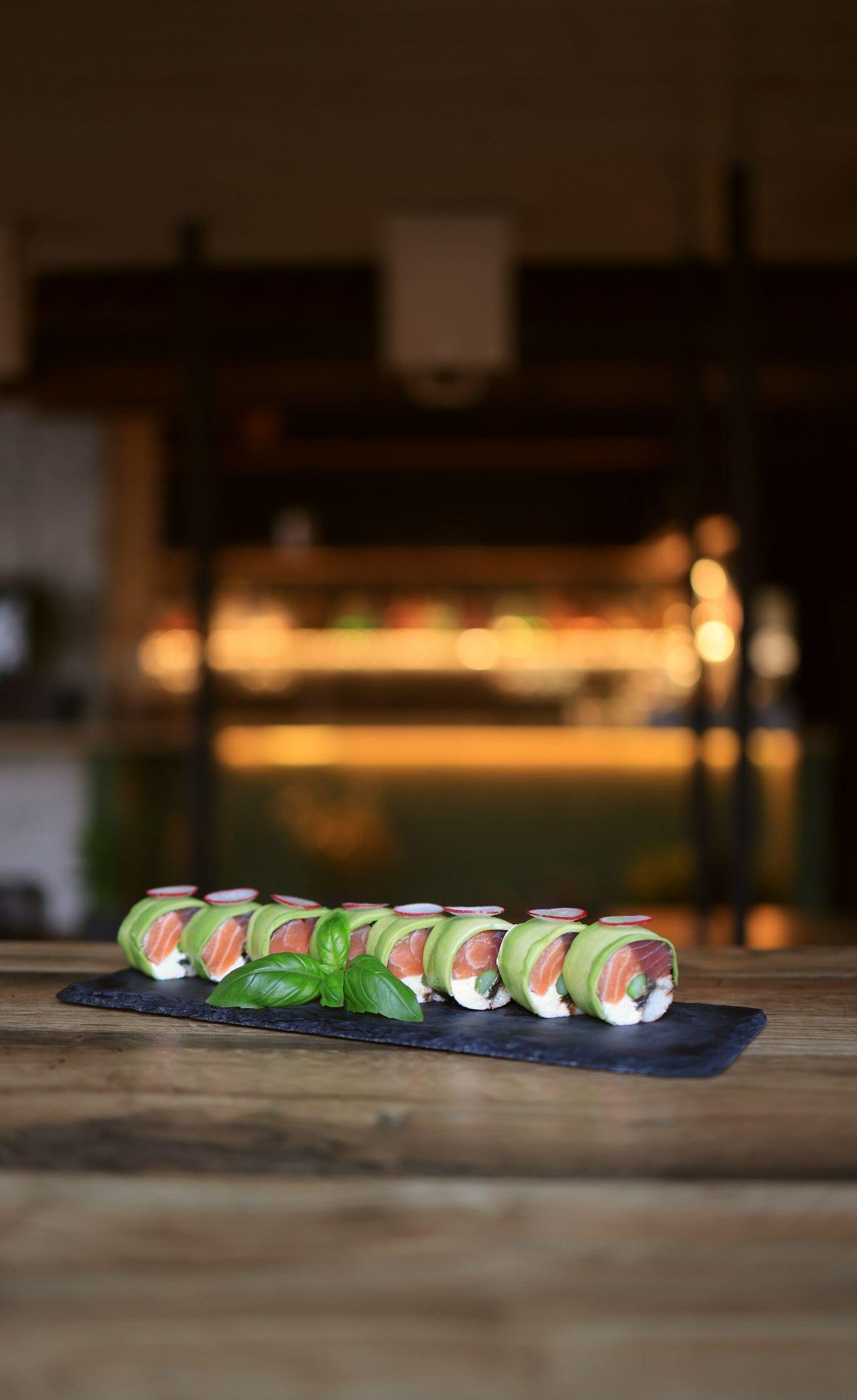 - FUTOMAK: SAKE TATAR – tatar z łososia podawany na maku z awokado
